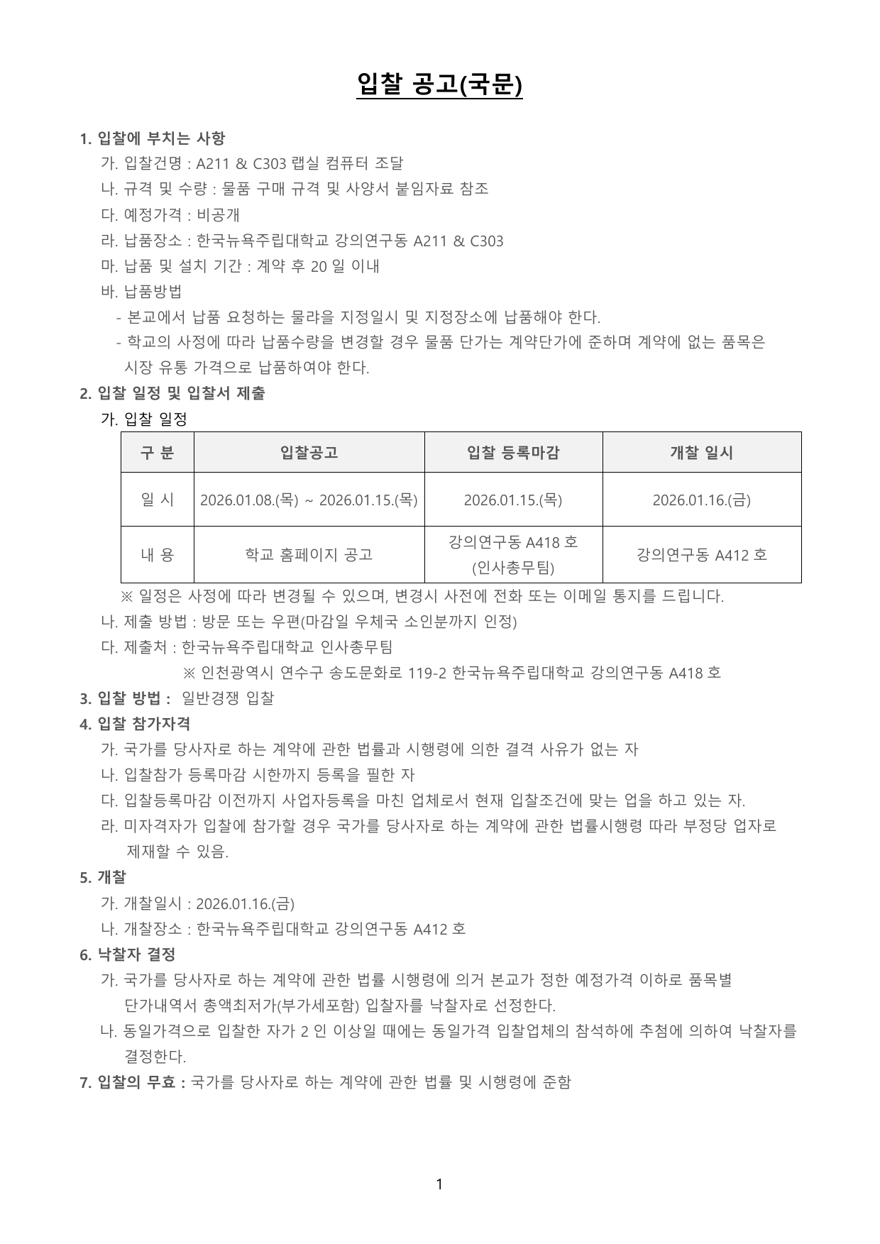 1) 입찰공고문_a211 & c303랩실 컴퓨터 조달_(국문&영문)_260107.pdf